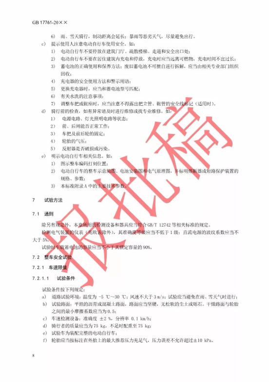 相关链接:《电动自行车安全技术规范》强制性国家标准报批稿